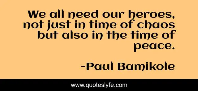 This page presents the quote "We all need our heroes, not just in time of chaos but also in the time of peace.". Author of this quote is Paul Bamikole. This quote is about heroes, peace, chaos,.