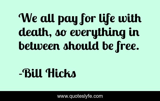 This page presents the quote "We all pay for life with death, so everything in between should be free.". Author of this quote is Bill Hicks. This quote is about humor, inspiration,.