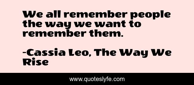 "Cassia Leo, The Way We Rise Quotes." Quoteslyfe.com, 2025. Mon. 08 Dec. 2025. <https://www.quoteslyfe.com/quote/We-all-remember-people-the-way-we-75999>.