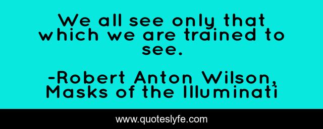 This page presents the quote "We all see only that which we are trained to see.". Author of this quote is Robert Anton Wilson, Masks of the Illuminati. This quote is about bias, perception,.