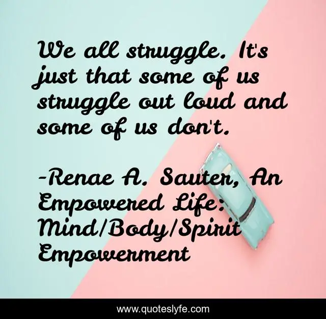 "Renae A. Sauter, An Empowered Life: Mind/Body/Spirit Empowerment Quotes." Quoteslyfe.com, 2025. Sat. 06 Dec. 2025. <https://www.quoteslyfe.com/quote/We-all-struggle-It-s-just-that-103394>.