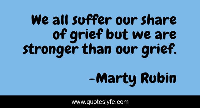 This page presents the quote "We all suffer our share of grief but we are stronger than our grief.". Author of this quote is Marty Rubin. This quote is about grief, suffering, strength,.
