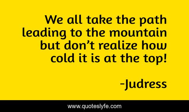This page presents the quote "We all take the path leading to the mountain but don’t realize how cold it is at the top!". Author of this quote is Judress. .