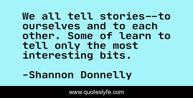 This page presents the quote "We all tell stories--to ourselves and to each other. Some of learn to tell only the most interesting bits.". Author of this quote is Shannon Donnelly. .