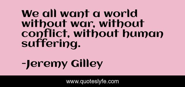 This page presents the quote "We all want a world without war, without conflict, without human suffering.". Author of this quote is Jeremy Gilley. This quote is about world, suffering, conflict,.