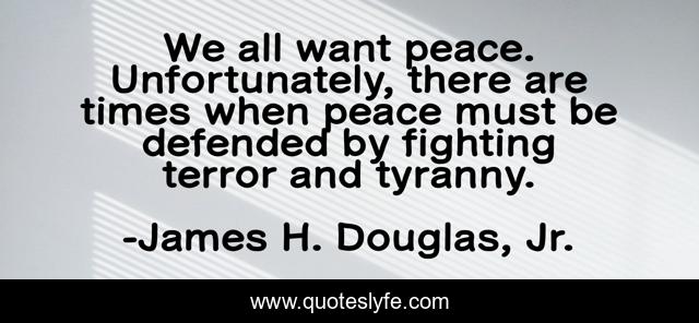 This page presents the quote "We all want peace. Unfortunately, there are times when peace must be defended by fighting terror and tyranny.". Author of this quote is James H. Douglas, Jr.. This quote is about tyranny, fighting,.