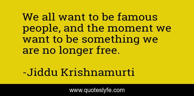 This page presents the quote "We all want to be famous people, and the moment we want to be something we are no longer free.". Author of this quote is Jiddu Krishnamurti. This quote is about moment, free, people,.