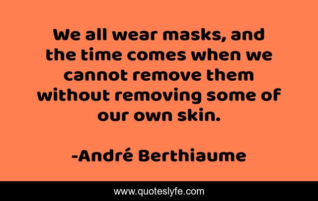 This page presents the quote "We all wear masks, and the time comes when we cannot remove them without removing some of our own skin.". Author of this quote is André Berthiaume. This quote is about self, masks,.