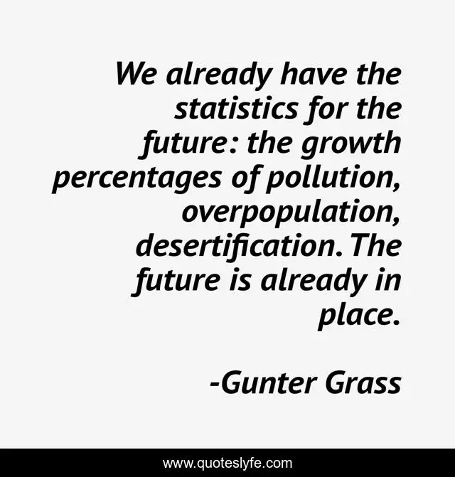 This page presents the quote "We already have the statistics for the future: the growth percentages of pollution, overpopulation, desertification. The future is already in place.". Author of this quote is Gunter Grass. This quote is about place, statistics, growth,.