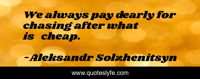 This page presents the quote "We always pay dearly for chasing after what is cheap.". Author of this quote is Aleksandr Solzhenitsyn. This quote is about idolatry, materialism,.