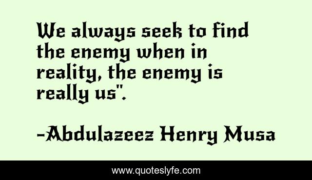This page presents the quote "We always seek to find the enemy when in reality, the enemy is really us".". Author of this quote is Abdulazeez Henry Musa. .