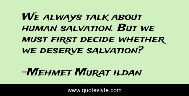 This page presents the quote "We always talk about human salvation. But we must first decide whether we deserve salvation?". Author of this quote is Mehmet Murat ildan. .
