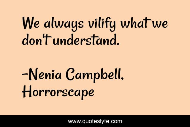 "Nenia Campbell, Horrorscape Quotes." Quoteslyfe.com, 2025. Fri. 05 Dec. 2025. <https://www.quoteslyfe.com/quote/We-always-vilify-what-we-don-t-45072>.