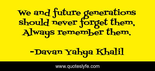 "Davan Yahya Khalil Quotes." Quoteslyfe.com, 2025. Fri. 05 Dec. 2025. <https://www.quoteslyfe.com/quote/We-and-future-generations-should-never-forget-241766>.