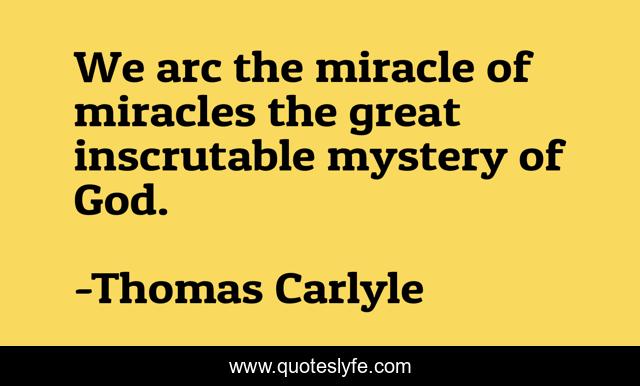This page presents the quote "We arc the miracle of miracles the great inscrutable mystery of God.". Author of this quote is Thomas Carlyle. .