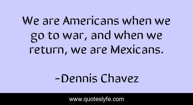 This page presents the quote "We are Americans when we go to war, and when we return, we are Mexicans.". Author of this quote is Dennis Chavez. This quote is about go, mexicans, return,.