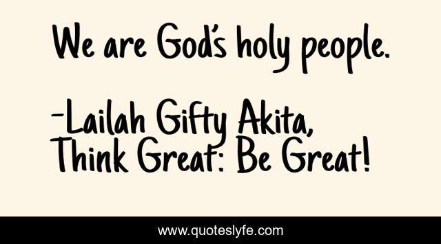 "Lailah Gifty Akita, Think Great: Be Great! Quotes." Quoteslyfe.com, 2025. Tue. 09 Dec. 2025. <https://www.quoteslyfe.com/quote/We-are-God-s-holy-people-85555>.
