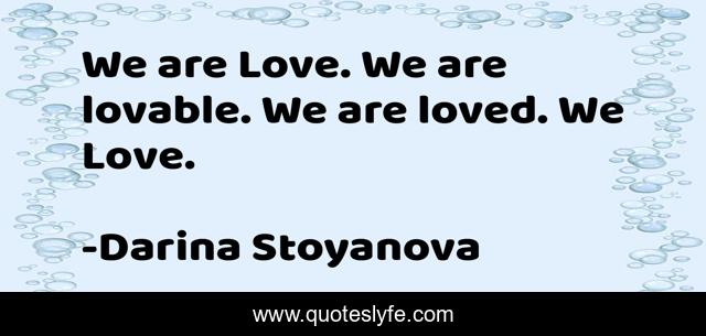 This page presents the quote "We are Love. We are lovable. We are loved. We Love.". Author of this quote is Darina Stoyanova. This quote is about love, affection,.