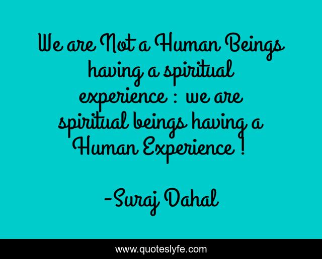 This page presents the quote "We are Not a Human Beings having a spiritual experience : we are spiritual beings having a Human Experience !". Author of this quote is Suraj Dahal. This quote is about spirituality, human-being, experience,.