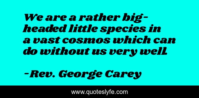 This page presents the quote "We are a rather big-headed little species in a vast cosmos which can do without us very well.". Author of this quote is Rev. George Carey. .
