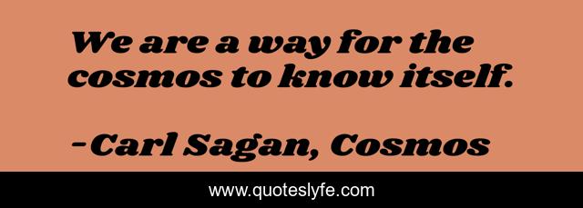 This page presents the quote "We are a way for the cosmos to know itself.". Author of this quote is Carl Sagan, Cosmos. This quote is about science, cosmos, thought-provoking,.