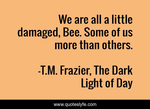 "T.M. Frazier, The Dark Light of Day Quotes." Quoteslyfe.com, 2025. Sun. 07 Dec. 2025. <https://www.quoteslyfe.com/quote/We-are-all-a-little-damaged-Bee-232446>.