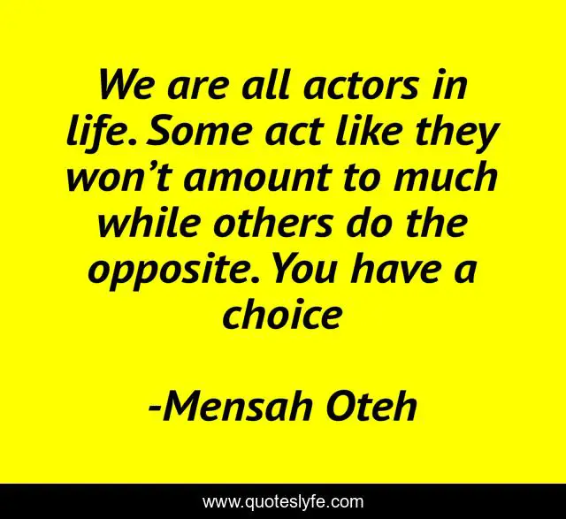 "Mensah Oteh Quotes." Quoteslyfe.com, 2025. Sun. 07 Dec. 2025. <https://www.quoteslyfe.com/quote/We-are-all-actors-in-life-Some-49180>.