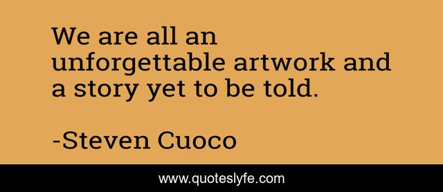 This page presents the quote "We are all an unforgettable artwork and a story yet to be told.". Author of this quote is Steven Cuoco. This quote is about quote-of-the-day, inspirational, quotes-to-live-by, enthusiasm, friendship, brainy-words,.