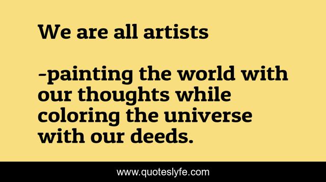 "painting the world with our thoughts while coloring the universe with our deeds. Quotes." Quoteslyfe.com, 2025. Mon. 08 Dec. 2025. <https://www.quoteslyfe.com/quote/We-are-all-artists-57847>.