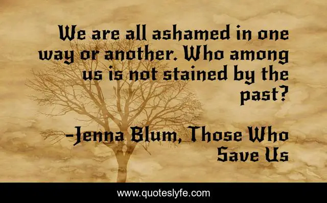 This page presents the quote "We are all ashamed in one way or another. Who among us is not stained by the past?". Author of this quote is Jenna Blum, Those Who Save Us. .