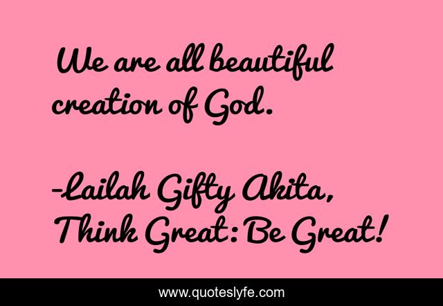 "Lailah Gifty Akita, Think Great: Be Great! Quotes." Quoteslyfe.com, 2025. Fri. 05 Dec. 2025. <https://www.quoteslyfe.com/quote/We-are-all-beautiful-creation-of-God-121302>.