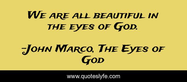 This page presents the quote "We are all beautiful in the eyes of God.". Author of this quote is John Marco, The Eyes of God. This quote is about enthusiasm, beauty, inspirational,.