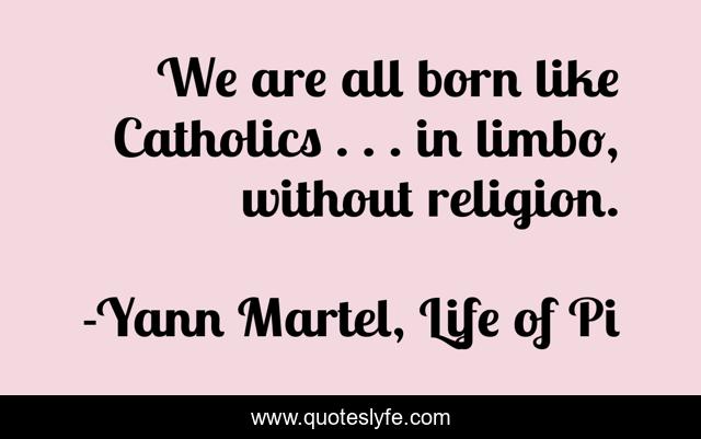 This page presents the quote "We are all born like Catholics . . . in limbo, without religion.". Author of this quote is Yann Martel, Life of Pi. This quote is about catholicism, religion,.