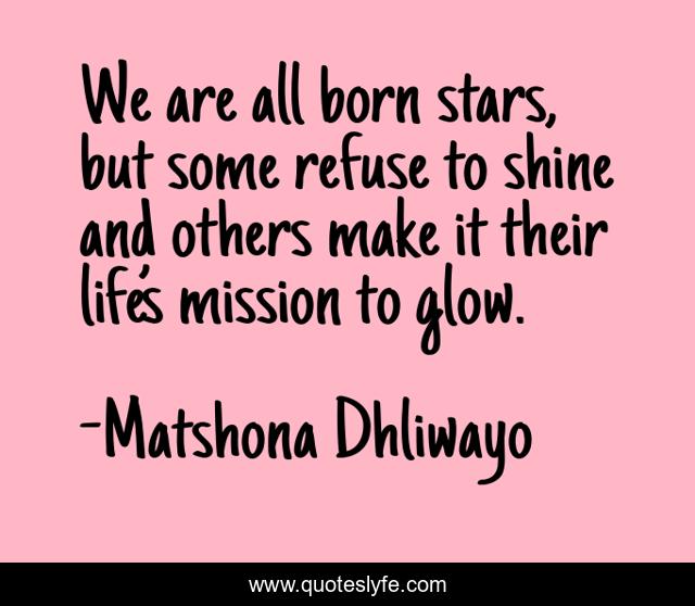 "Matshona Dhliwayo Quotes." Quoteslyfe.com, 2025. Sun. 07 Dec. 2025. <https://www.quoteslyfe.com/quote/We-are-all-born-stars-but-some-14839>.