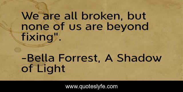 This page presents the quote "We are all broken, but none of us are beyond fixing".". Author of this quote is Bella Forrest, A Shadow of Light. .