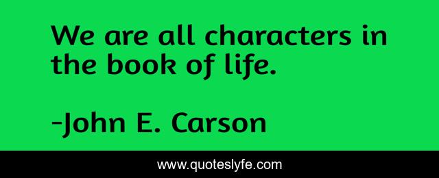 This page presents the quote "We are all characters in the book of life.". Author of this quote is John E. Carson. This quote is about life, book, characters,.