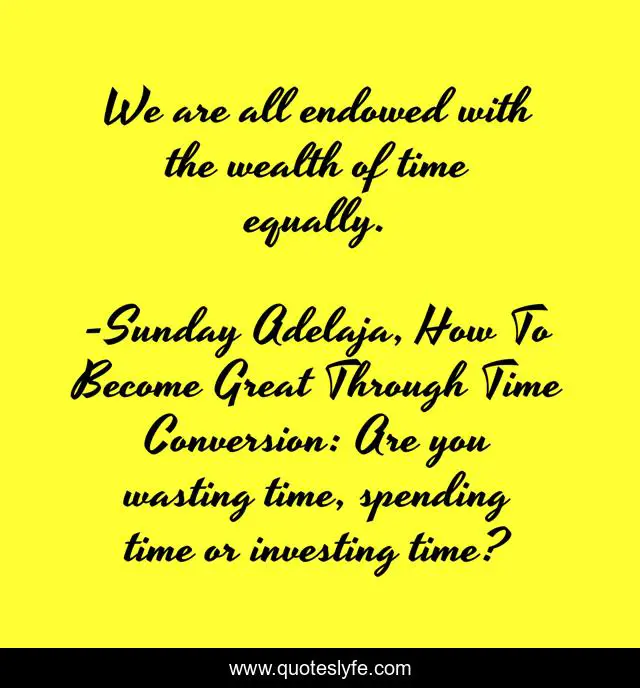 "Sunday Adelaja, How To Become Great Through Time Conversion: Are you wasting time, spending time or investing time? Quotes." Quoteslyfe.com, 2025. Fri. 05 Dec. 2025. <https://www.quoteslyfe.com/quote/We-are-all-endowed-with-the-wealth-38978>.