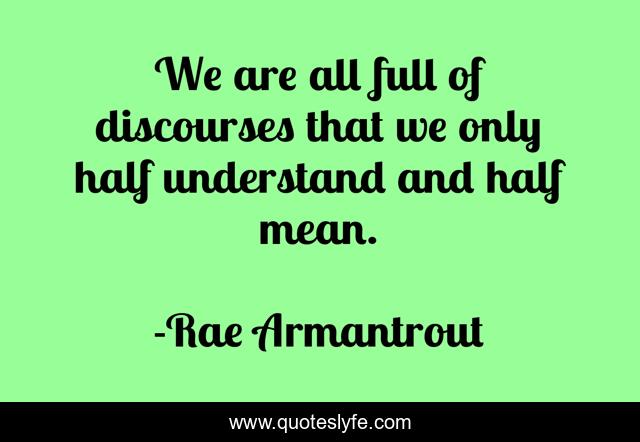 This page presents the quote "We are all full of discourses that we only half understand and half mean.". Author of this quote is Rae Armantrout. This quote is about discourse, philosophical, language, english,.