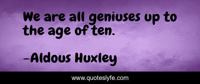 This page presents the quote "We are all geniuses up to the age of ten.". Author of this quote is Aldous Huxley. This quote is about geniuses, up, ten,.