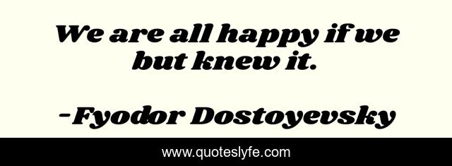 This page presents the quote "We are all happy if we but knew it.". Author of this quote is Fyodor Dostoyevsky. .
