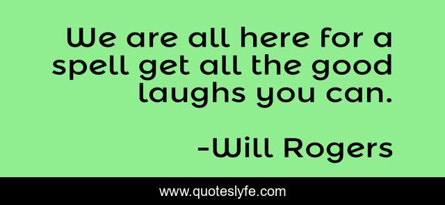 This page presents the quote "We are all here for a spell get all the good laughs you can.". Author of this quote is Will Rogers. This quote is about humorists, humour,.