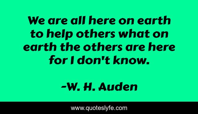 This page presents the quote "We are all here on earth to help others what on earth the others are here for I don't know.". Author of this quote is W. H. Auden. This quote is about giving, goodness,.