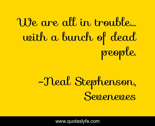 This page presents the quote "We are all in trouble.... with a bunch of dead people.". Author of this quote is Neal Stephenson, Seveneves. .