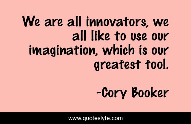 This page presents the quote "We are all innovators, we all like to use our imagination, which is our greatest tool.". Author of this quote is Cory Booker. This quote is about tool, greatest, like,.