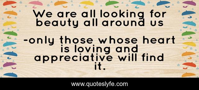 This page presents the quote "We are all looking for beauty all around us". Author of this quote is only those whose heart is loving and appreciative will find it.. .