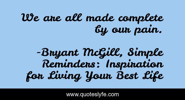 This page presents the quote "We are all made complete by our pain.". Author of this quote is Bryant McGill, Simple Reminders: Inspiration for Living Your Best Life. This quote is about completeness, growth, pain, wholeness, spirituality,.