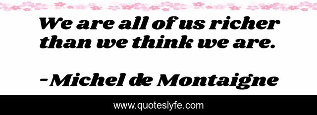 "Michel de Montaigne Quotes." Quoteslyfe.com, 2025. Sun. 07 Dec. 2025. <https://www.quoteslyfe.com/quote/We-are-all-of-us-richer-than-265543>.