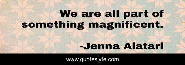 "Jenna Alatari Quotes." Quoteslyfe.com, 2025. Fri. 05 Dec. 2025. <https://www.quoteslyfe.com/quote/We-are-all-part-of-something-magnificent-148114>.