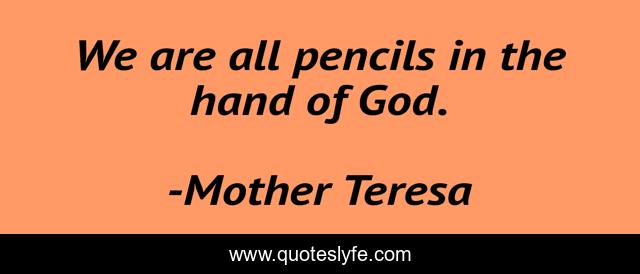 This page presents the quote "We are all pencils in the hand of God.". Author of this quote is Mother Teresa. .