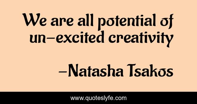 This page presents the quote "We are all potential of un-excited creativity". Author of this quote is Natasha Tsakos. This quote is about potential, creativity,.